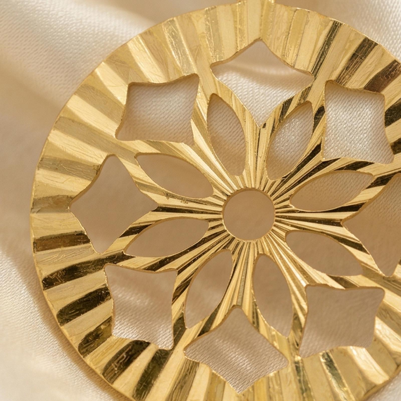 This 18K gold pendant set from Bafleh Jewellery is a timeless piece designed to complement your individuality. The smooth contours and elegant finish make it a versatile accessory that suits all occasions, from daily wear to festive celebrations.