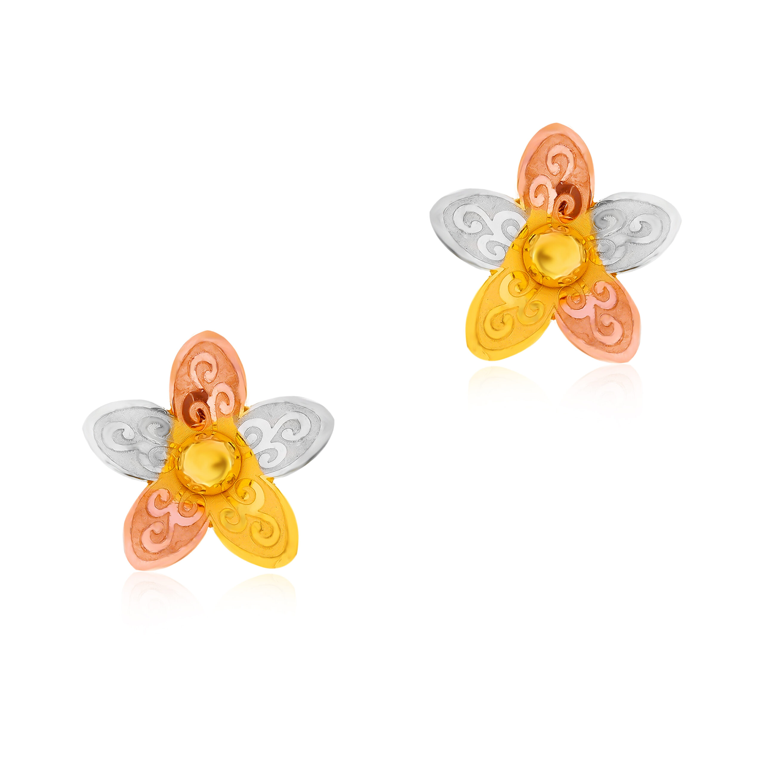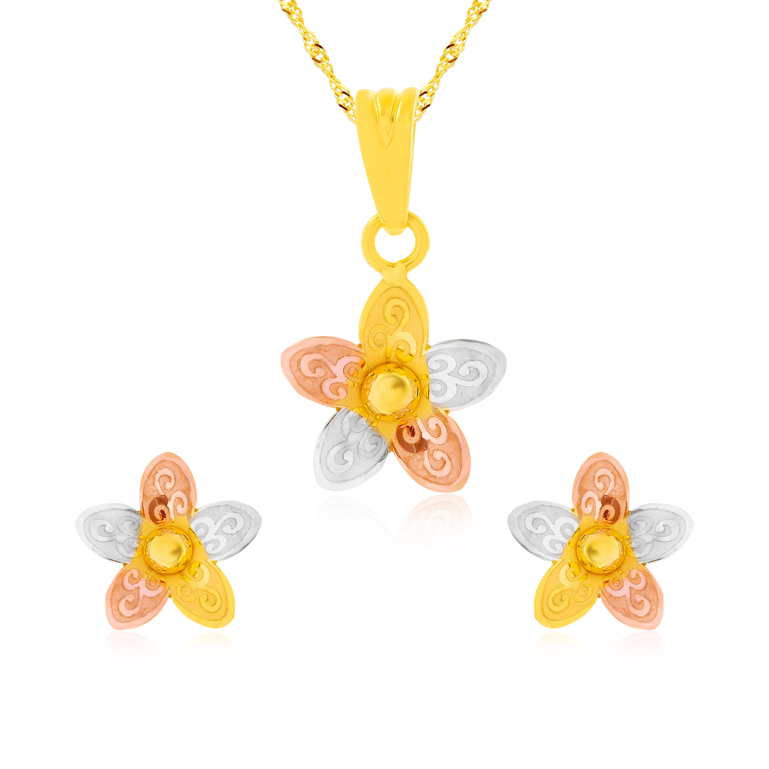 22K Three-Tone Gold Pendant Set Fusion of Rose, Yellow & White Gold by Bafleh Jewellery
