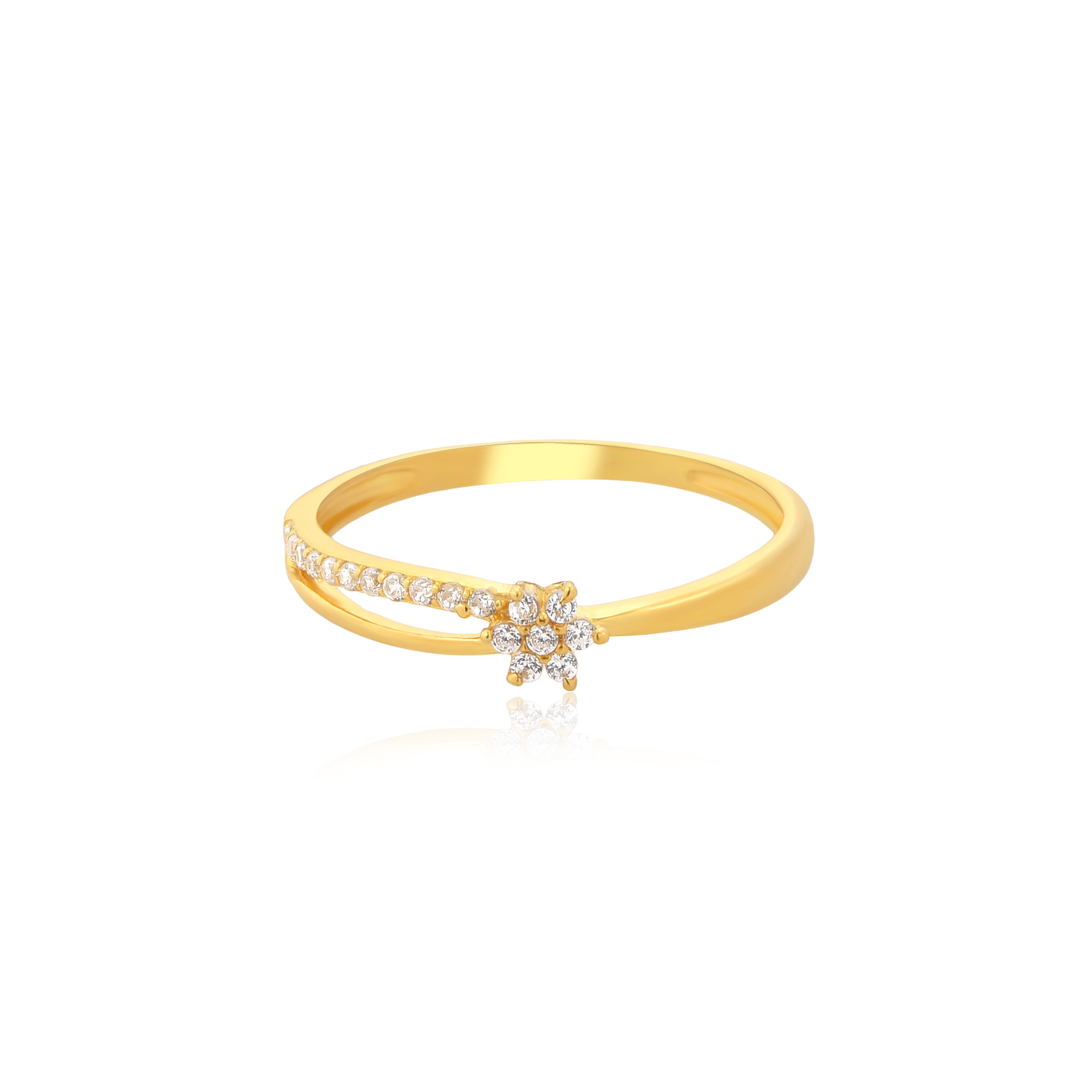 Celebrate natural beauty with this exquisite 22K gold ring, adorned with a delicate flower shape crafted entirely from sparkling white stones. The intricate floral design radiates elegance and charm, capturing the essence of timeless femininity. Perfect for adding a touch of graceful luxury to any outfit, this ring is a stunning symbol of purity and style.