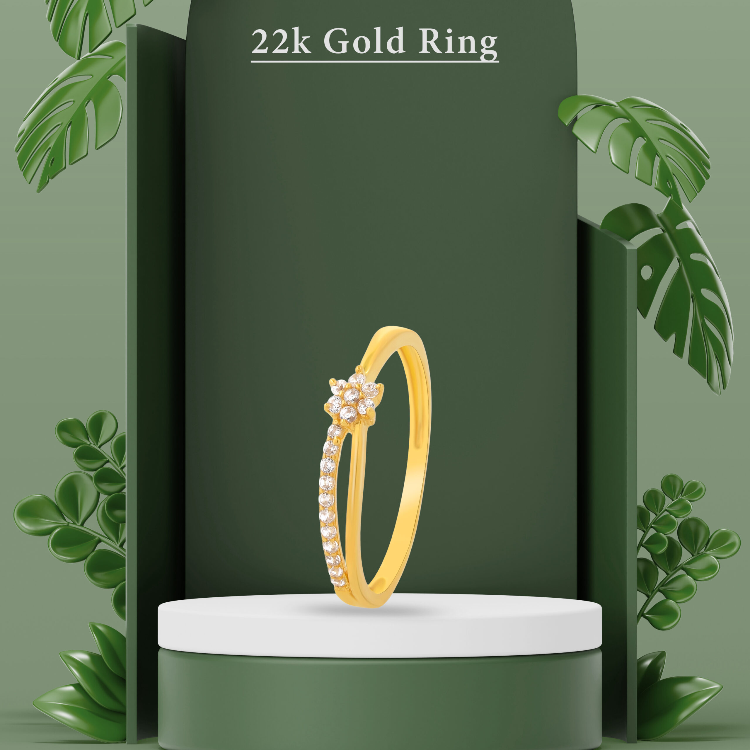 Classic & Contemporary 22K Gold Rings White Stone Embellishments in Floral Style