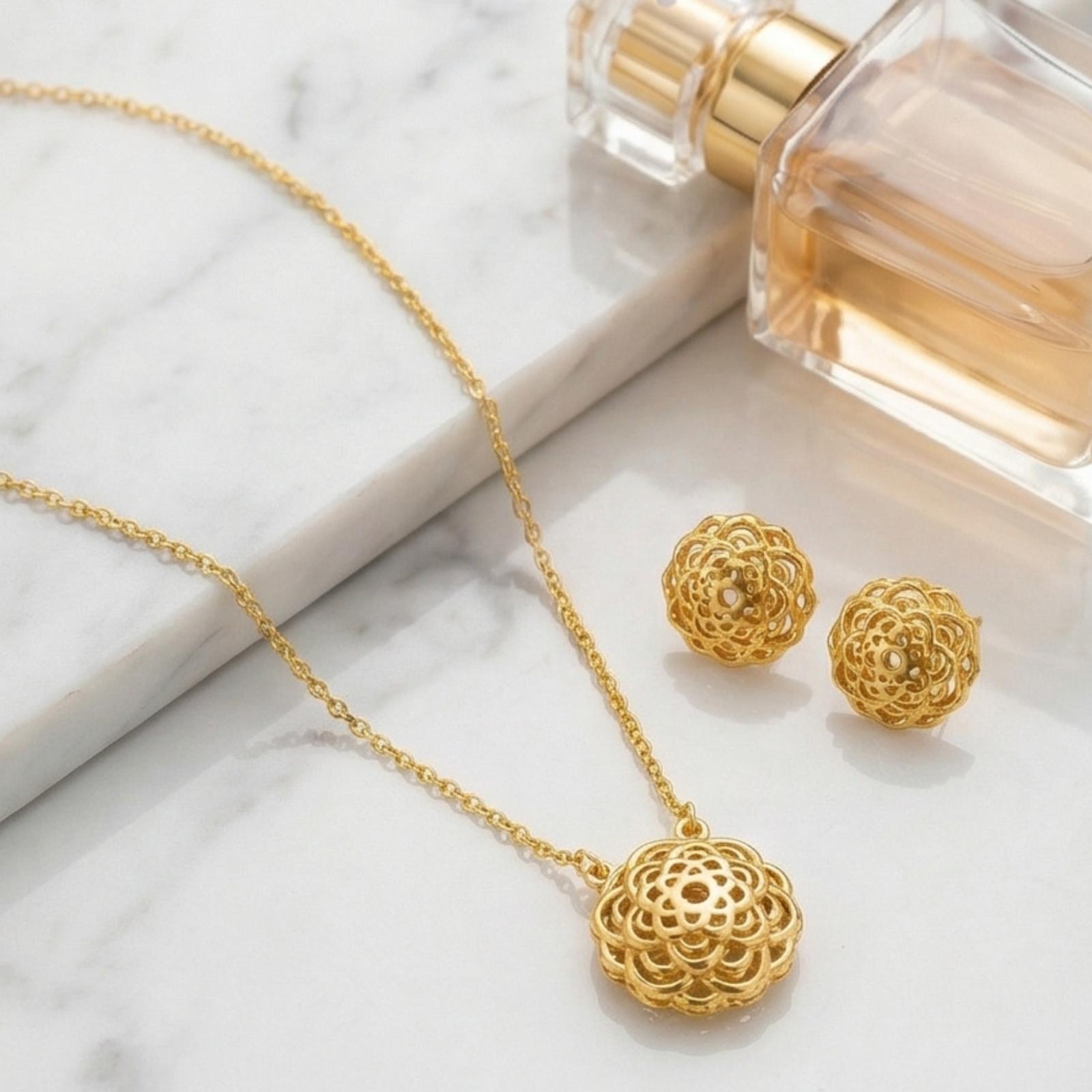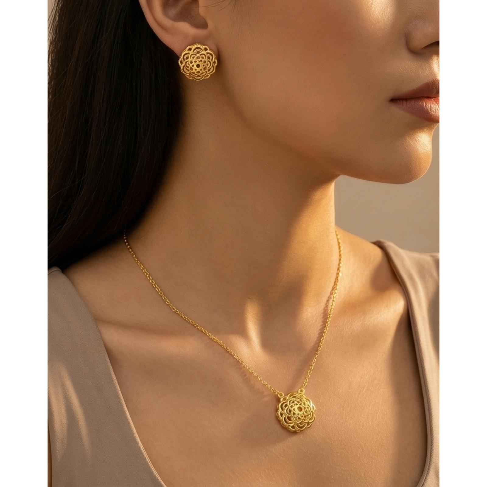 Redefining Everyday Glamour : Lightweight 22kt Gold Necklace Set by Bafleh Jewellery for the Modern Woman