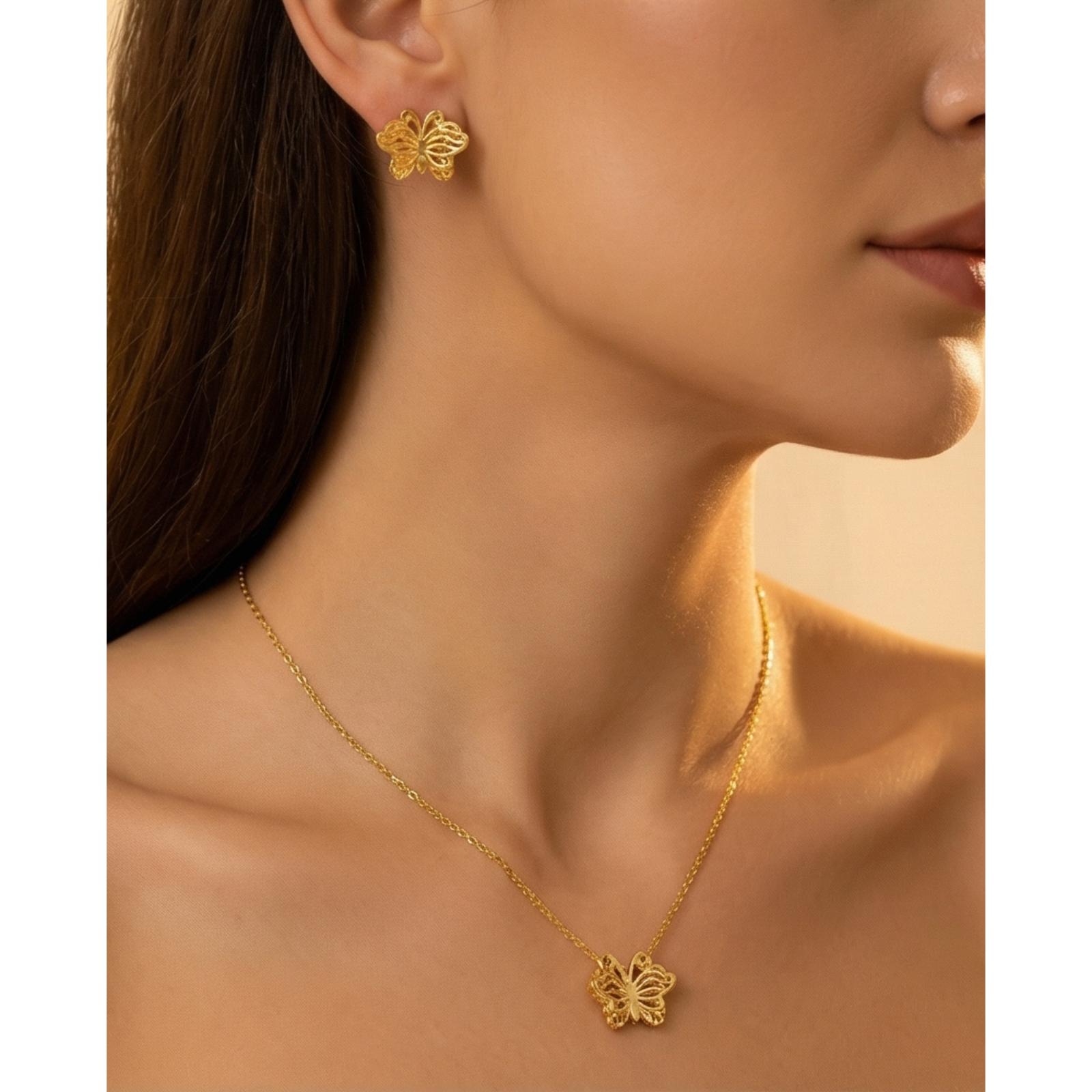 Tradition in a Modern Touch : Lightweight 22kt Gold Necklace Set by Bafleh Jewellery for Everyday Luxury
