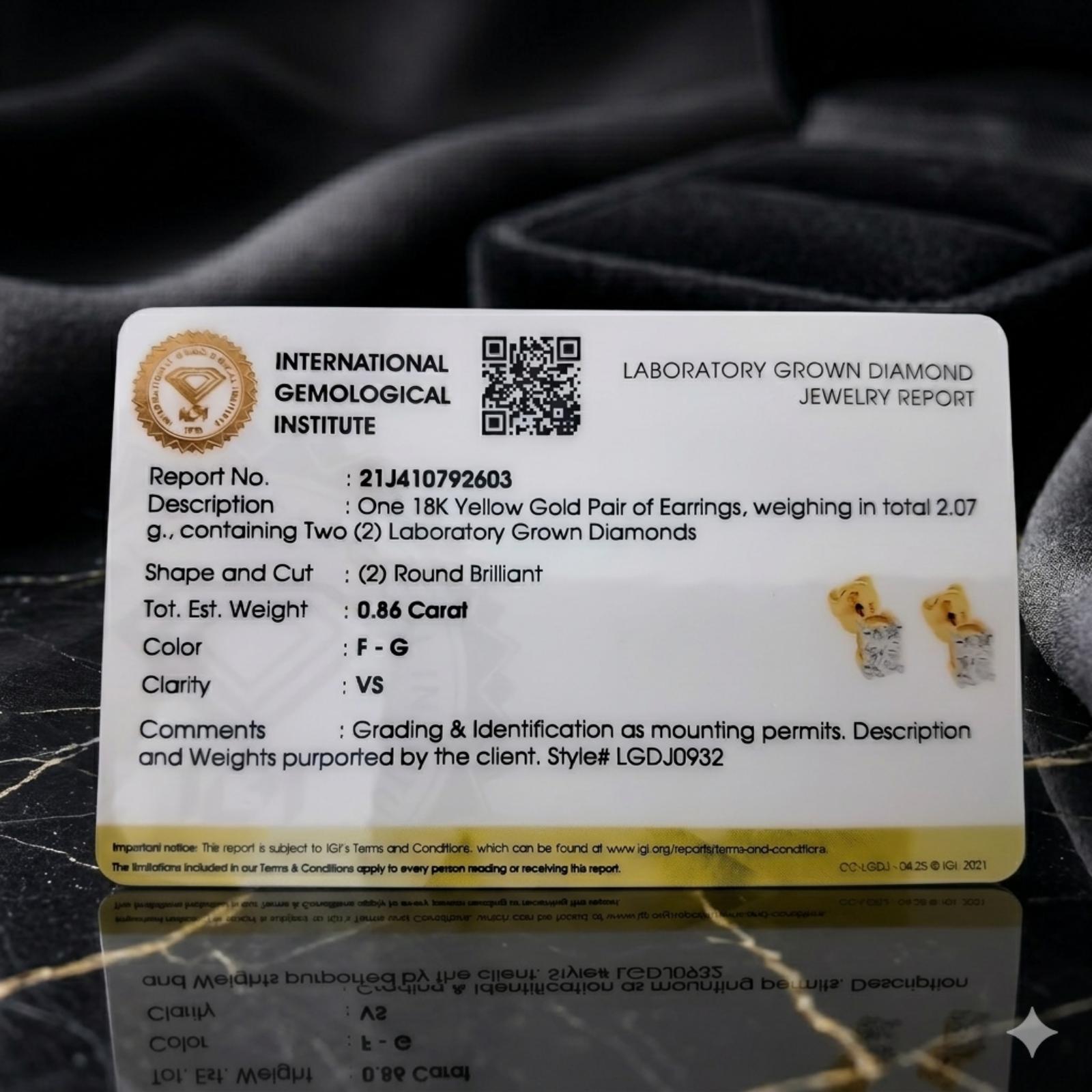 Experience Certified Brilliance: 18K Yellow Gold Diamond Earrings with IDT Certificate – Available Only at Bafleh Jewellery